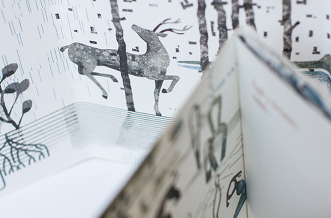 Il libro è un leporello: proseguendo con la lettura il volume si apre fino a diventare un grande panorama in cui perdersi.