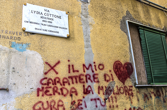 Moltissima parte della cittadinanza non sa che Lydia Cottone è autrice di opere simbolo di Napoli. Una donna e una artista scarsamente ri-conosciuta anche se le sue opere sono sotto gli occhi di tutte e tutti. La città dove nacque nel 1922 e morì all’età di settantasette anni ignora che il monumento a Salvo D’Acquisto, carabiniere eroe notissimo, celebrato anche da sceneggiati televisivi, nell’omonima piazza, è una sua opera. Le ricorrenze del calendario civile, dal 25 Aprile alle Quattro Giornate di Napoli, vedono autorità e associazioni deporre corone dall’alloro alla memoria di eroi civili, ai piedi delle sue sculture, dimenticando sempre il nome della donna che eresse in loro ricordo manufatti imponenti e indimenticabili. Così è per i due gruppi bronzei di “Alfa e Omega” nel nuovo cimitero di Poggioreale e per il “Podista e il Discobolo” esposti nei giardini di Piazza Quattro Giornate. Tutte opere popolarissime, punti di riferimento nella geografia cittadina, luoghi di ritrovo quotidiani che si scoprono dover essere alla ricerca dell’autrice che li ideò e realizzò. La fama internazionale è ampia, meno nella patria natia: sarà anche l’essere stata una scultrice? L’oblio legato alla fine dell’esistenza terrena delle artiste, delle scrittrici, pittrici, come già ricordato negli altri articoli? La difficile resistenza nella memoria collettiva di opere e attività di tante donne significative? Oltre a Napoli – dove si diplomò, all’Accademia delle Belle Arti, e dove intraprese la strada della figurazione neorealista, per conquistarsi ben presto uno spazio autonomo di taglio espressionista – altre sue opere sono esposte in importanti sedi europee come Copenaghen e San Pietroburgo. Una strada le è stata intitolata, la targa apposta nel 2014 per la tenacia della nipote e altri familiari, nella zona definita “dei colli” poco lontano dalla sua ultima abitazione; dopo l’apposizione della targa stradale, riconquistata la notorietà, il Terziario Donna della Confcommercio di Napoli ha intitolato a Cottone il suo Premio annuale.