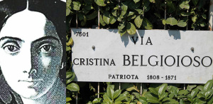 Cristina Trivulzio di Belgioioso è relegata un po’ lontano dal centralissimo palazzo Belgioioso, ma molti angoli di Milano portano le sue tracce. L’atto di battesimo venne registrato nella parrocchia della chiesa di Sant’Alessandro. Il suo matrimonio con il giovane ed avvenente principe Emilio Barbiano di Belgiojoso avvenne nella chiesa di S. Fedele il 24 settembre 1824. La più ricca ereditiera d’Italia vantava una dote di 400.000 lire austriache. Aveva allora solo 16 anni. Fu un’unione infelice, che aggiunse pene ai problemi di epilessia e di salute cagionevole. Divenuta fervente patriota, Cristina viaggiò in Italia, in Svizzera, in Francia, ebbe i beni confiscati dagli Austriaci, tanto che la sua firma sui bozzetti dei parlamentari francesi, che le erano stati commissionati, divenne La Princesse ruinée (La principessa rovinata). Avversa ai progetti mazziniani, che riteneva fallimentari, non sempre godette di simpatie tra i fuoriusciti italiani a Parigi. La sua vita avventurosa anche dopo la nascita della figlia Maria la condusse da Locate a Napoli, in Turchia, sempre in ristrettezze. Il che non le impedì di aiutare le donne più umili e i loro figli, e di pagare il viaggio a 200 patrioti che volevano partecipare alle 5 giornate di Milano.