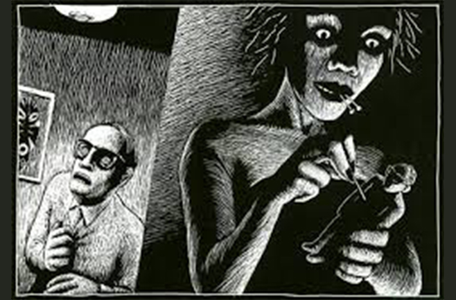 Le storie di Ott diventano quindi dei brevi racconti dell’orrore, ricchi di suspence, che turbano e stordiscono chi legge, narrati in una quasi totale assenza di parole, ma solo attraverso vignette che emergono dal nero con spettacolari tagli e inquadrature cinematografiche.